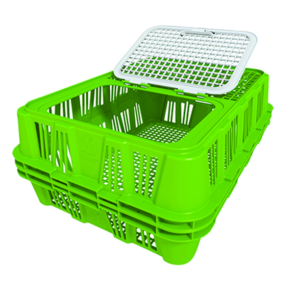 The Space Saver Live Bird Crate stacks with the existing crate and boasts an astounding 420kg top loading capability. It is easy to unclip, allowing the top half to stack into the bottom half, thus requiring five times less storage space and 80% less space when transporting, and allowing for easier cleaning. The unique diamond profile between stacked crates allows for improved air flow.